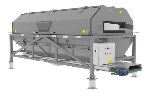 Maszyna oddzielająca kamienie i cięższe zanieczyszczenia z surowca przed sortowaniem.