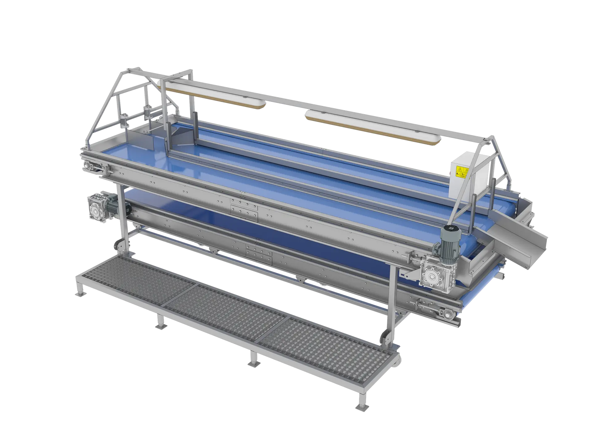 Wielofunkcyjny stół taśmowy do inspekcji ręcznej produktów i warzyw liściastych.