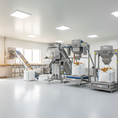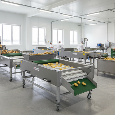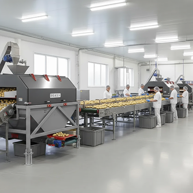 Na tym etapie linia technologiczna REKEN oddziela surowiec według rozmiaru, jakości i kształtu, przygotowując go do dalszej obróbki. Precyzyjne kalibrowniki KA-780 oraz systemy separujące w koszach przyjęciowych umożliwiają skuteczne rozdzielanie warzyw bez ich uszkadzania. Urządzenia pozwalają na płynną regulację odstępów między rolkami oraz dopasowanie do rodzaju produktu — od cebuli i ziemniaków po marchew i buraki.