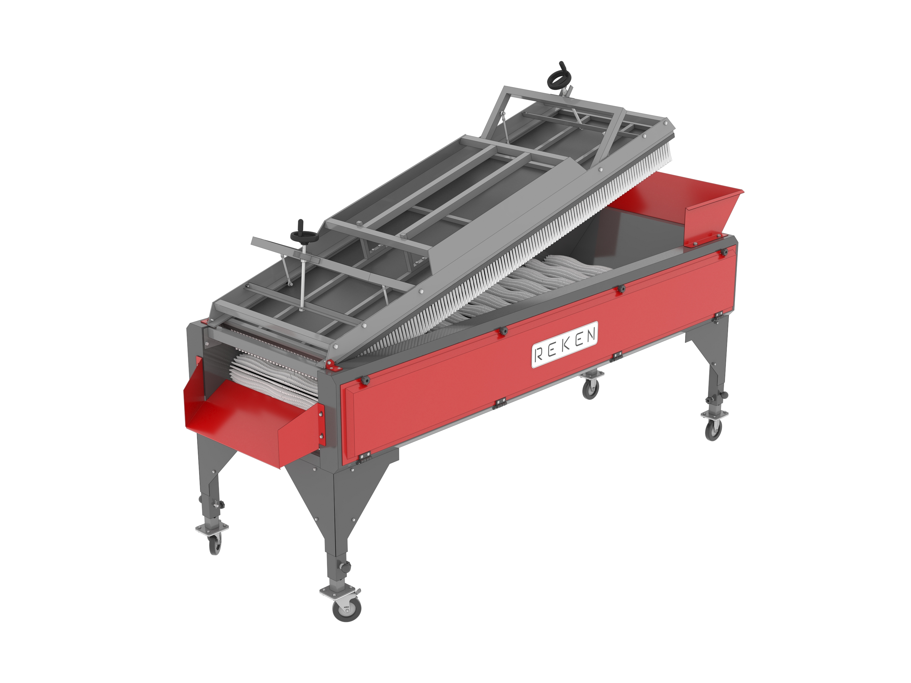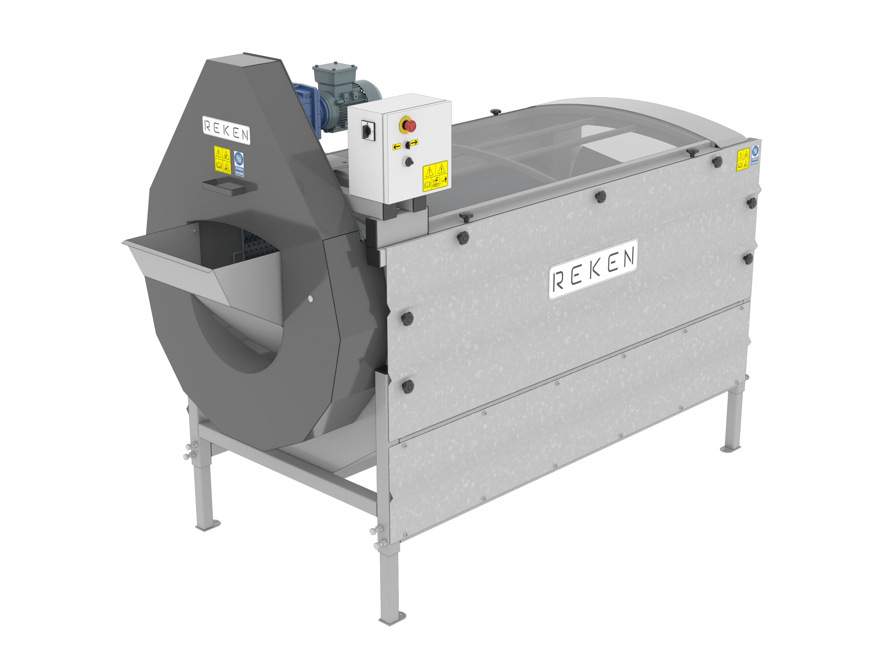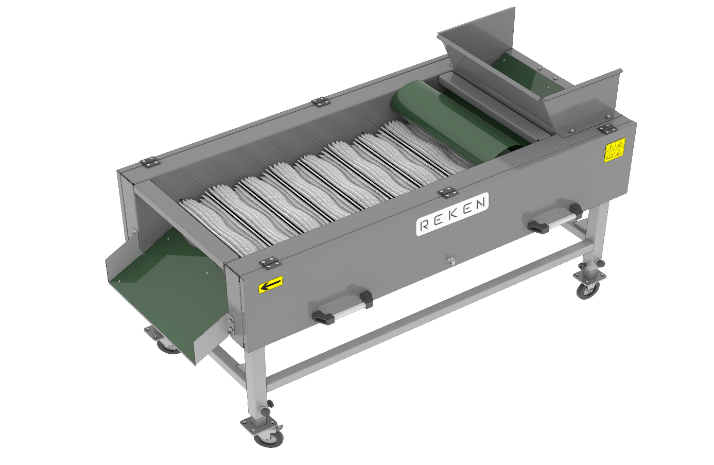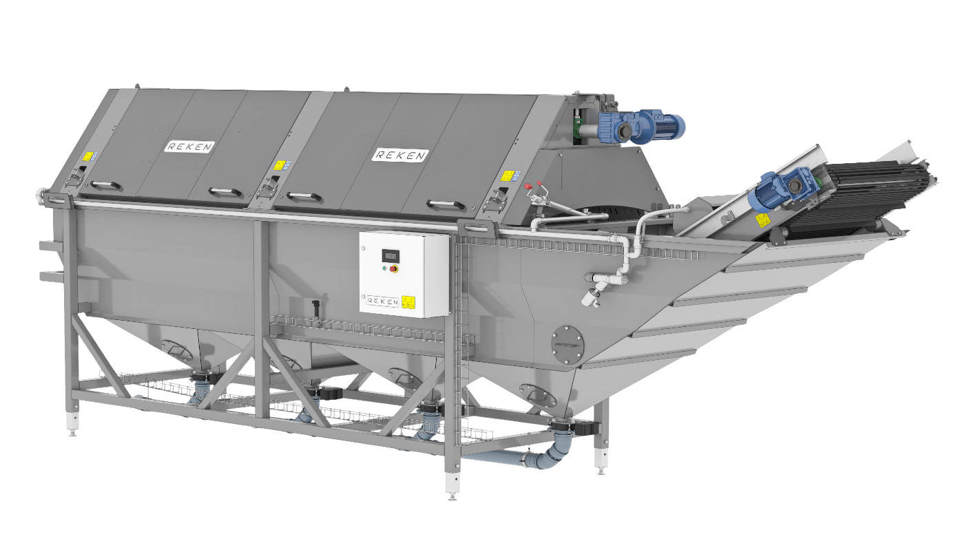 System REKEN do mycia i polerowania składa się z modułów czyszczących (na sucho lub mokro), bębnowych myjek wodnych oraz szczotkarek i polerek. Proces obejmuje kilka etapów: