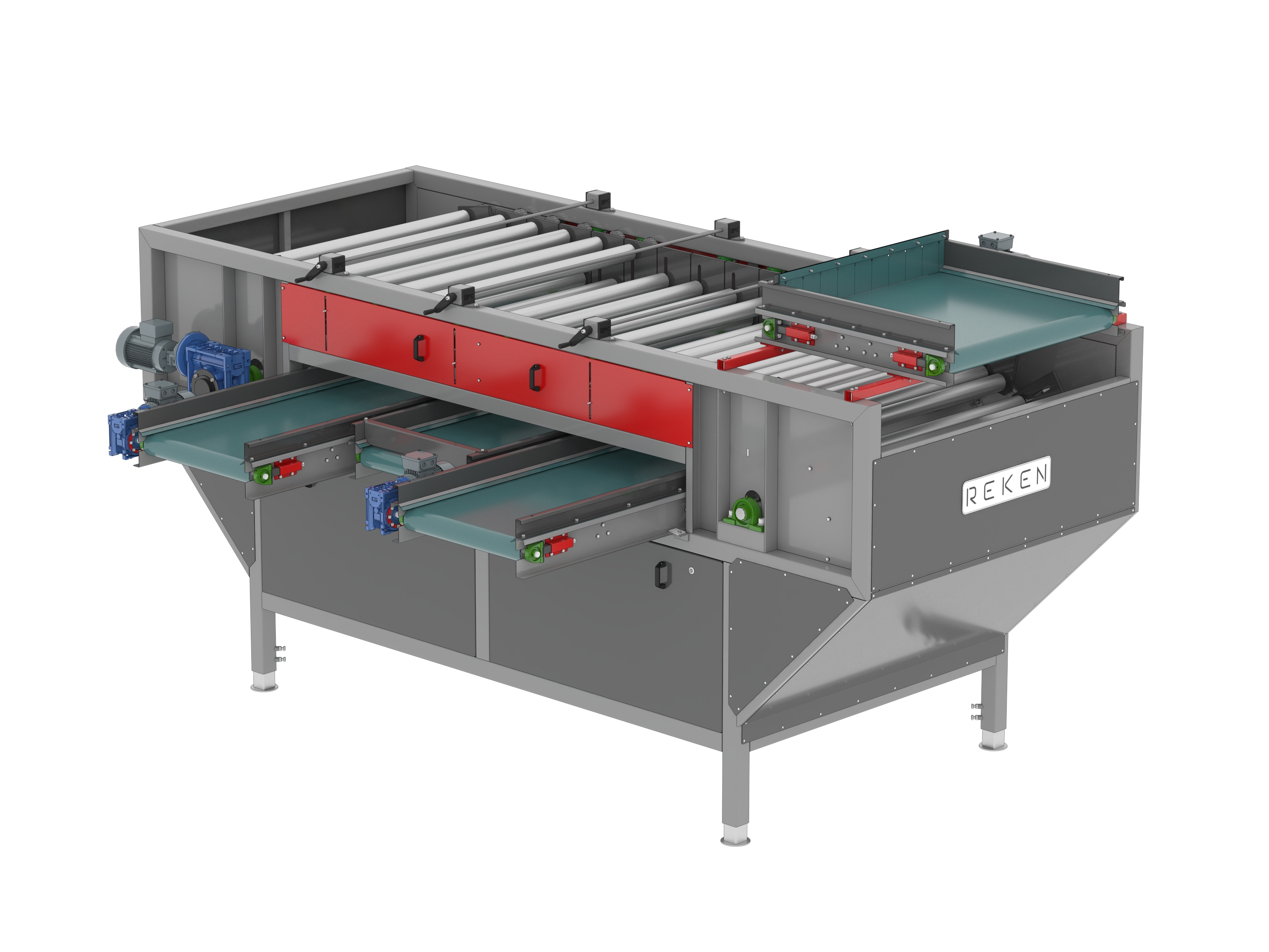System sortowania i kalibracji REKEN łączy urządzenia automatyczne z manualnymi stanowiskami inspekcyjnymi. Produkt po myciu lub buforowaniu trafia na stoły selekcyjne lub sortowniki, gdzie następuje podział według wielkości, jakości i stanu powierzchni.