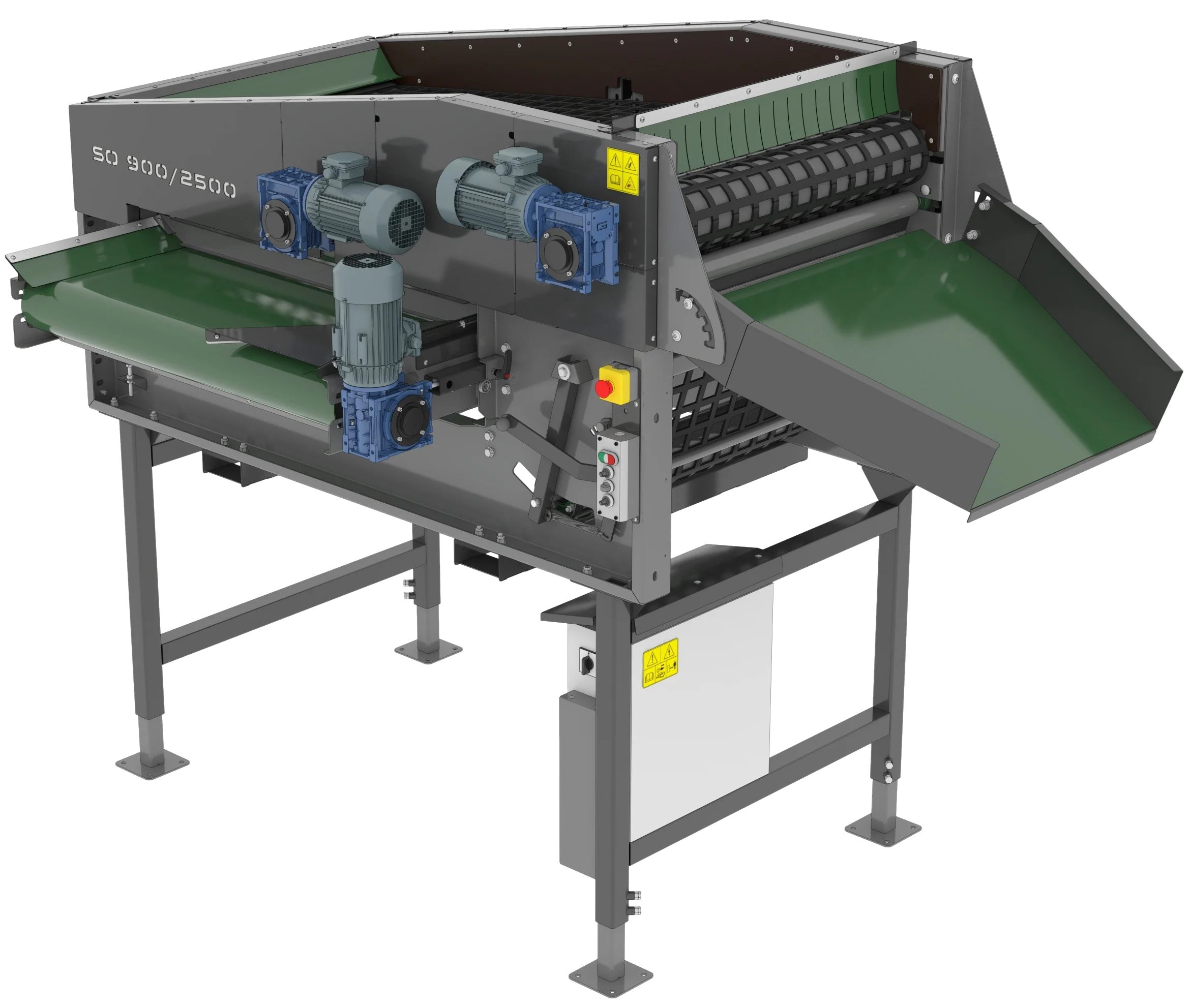 Sortownik przeznaczony do kalibracji warzyw owalnych i okrągłych w ruchu ciągłym.