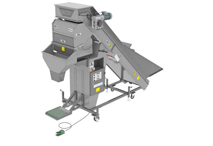 Sekcja ważenia i pakowania REKEN składa się z modułów wagowych, stacji zasypowych i urządzeń pakujących. Proces rozpoczyna się od precyzyjnego odmierzenia porcji warzyw, które następnie są automatycznie kierowane do odpowiednich opakowań. Całość może pracować w trybie ciągłym lub porcjowanym, w zależności od wymagań produkcji.